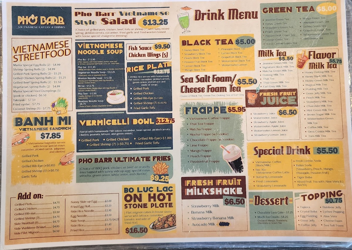 With reviews highlighting a casual yet vibrant atmosphere, quick service, and generous portions, Pho Barr invites you to indulge in a satisfying dining experience. Dive into a bowl of pho or grab a sandwich, and experience a taste of Vietnam that won't break the bank!